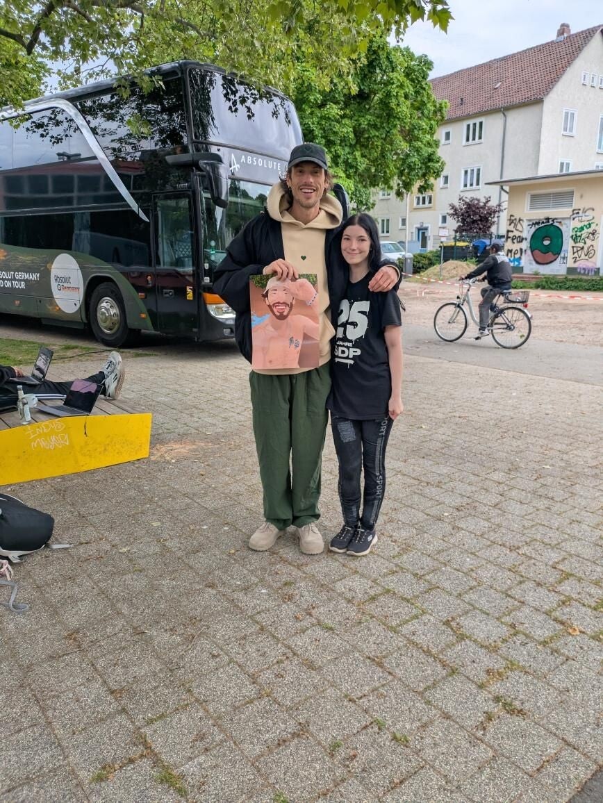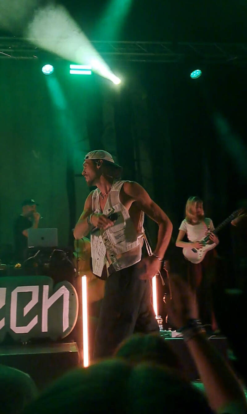 „Ich liebe dieses Bild von GReeeN das war 2023 in Kassel wo er Support Act bei SDP war 💚🌻“