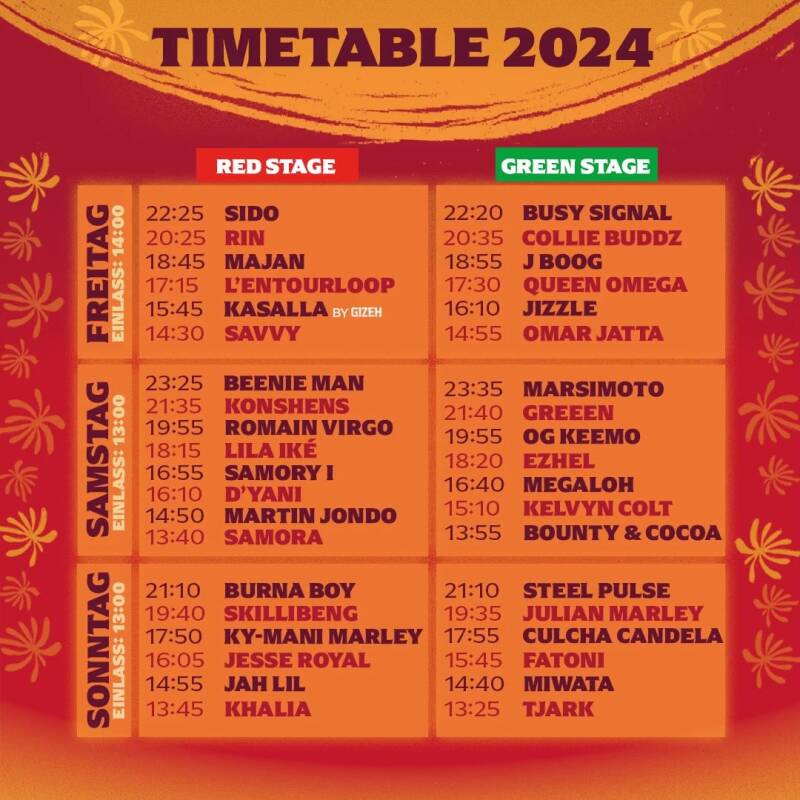 GReeeN-Fam, endlich ist es soweit! Der Timetable für das Summerjam Festival ist draußen. GReeeN wird am 06.07. um 21:40 Uhr auf der Green Stage auftreten, direkt vor Marsimoto!
