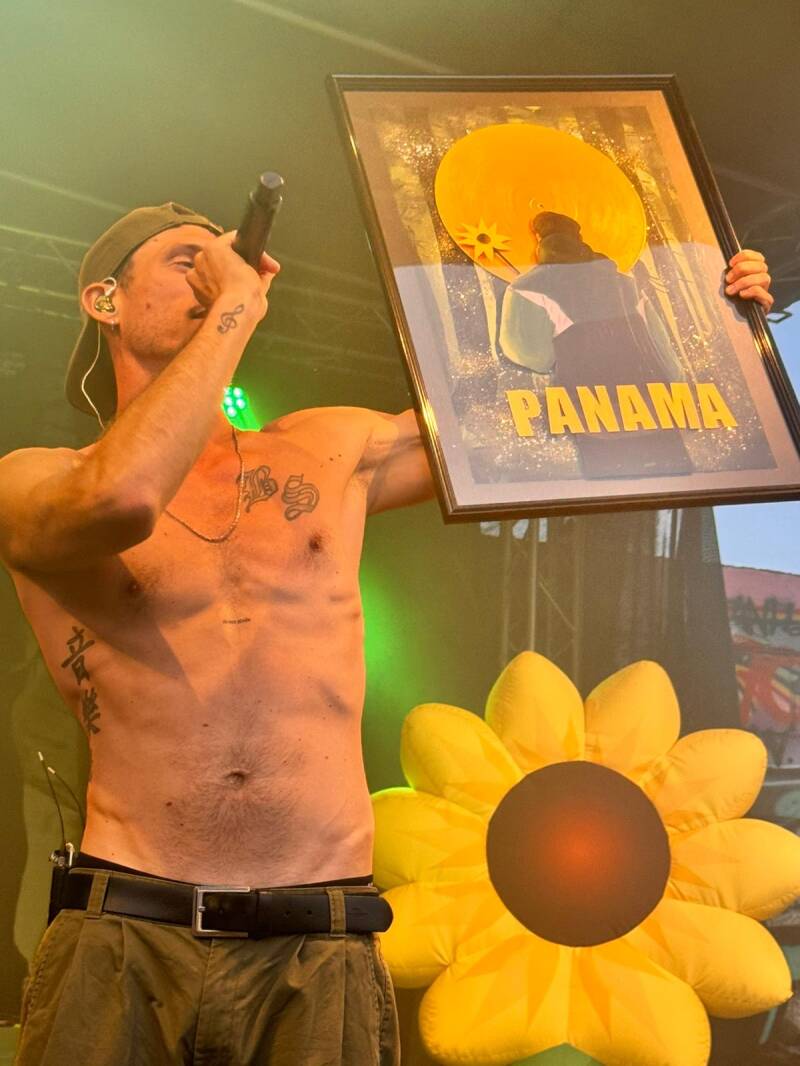Nachdem er seinen Song Panama performt hat durfte GReeeN eine von uns gestaltete goldene Schallplatte für diesen Song auspacken!