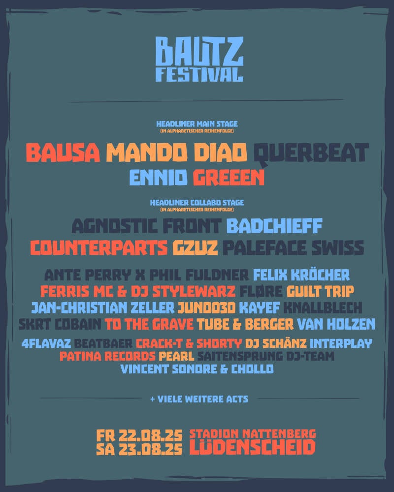 GReeeN wird am Samstag den 23.08.2025 beim Festival dabei sein & Tagestickets könnt ihr euch unter www.bautzfestival.de für 64,50 € kaufen. Zudem wurden weitere Acts in der zweiten Bandwelle bekanntgegeben. Wen sehen wir im August in Lüdenscheid?!