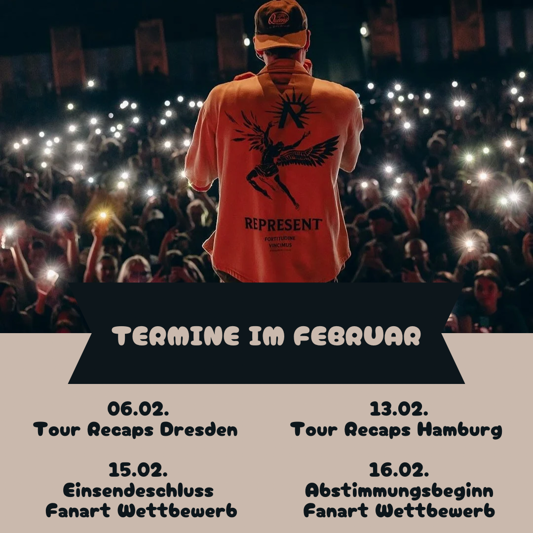 Es ist Februar & wir haben wie immer die wichtigsten Termine in diesem Monat für euch zusammenfasst! In diesem Monat erhaltet ihr mindestens zwei weitere Tour Recaps und es geht mit unserem Fanart Wettbewerb weiter!
