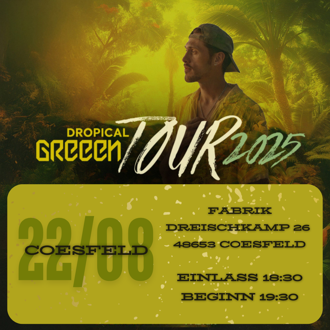 Heute endet die Dropical GReeeN Tour mit dem Abschlusskonzert in der Fabrik Coesfeld .